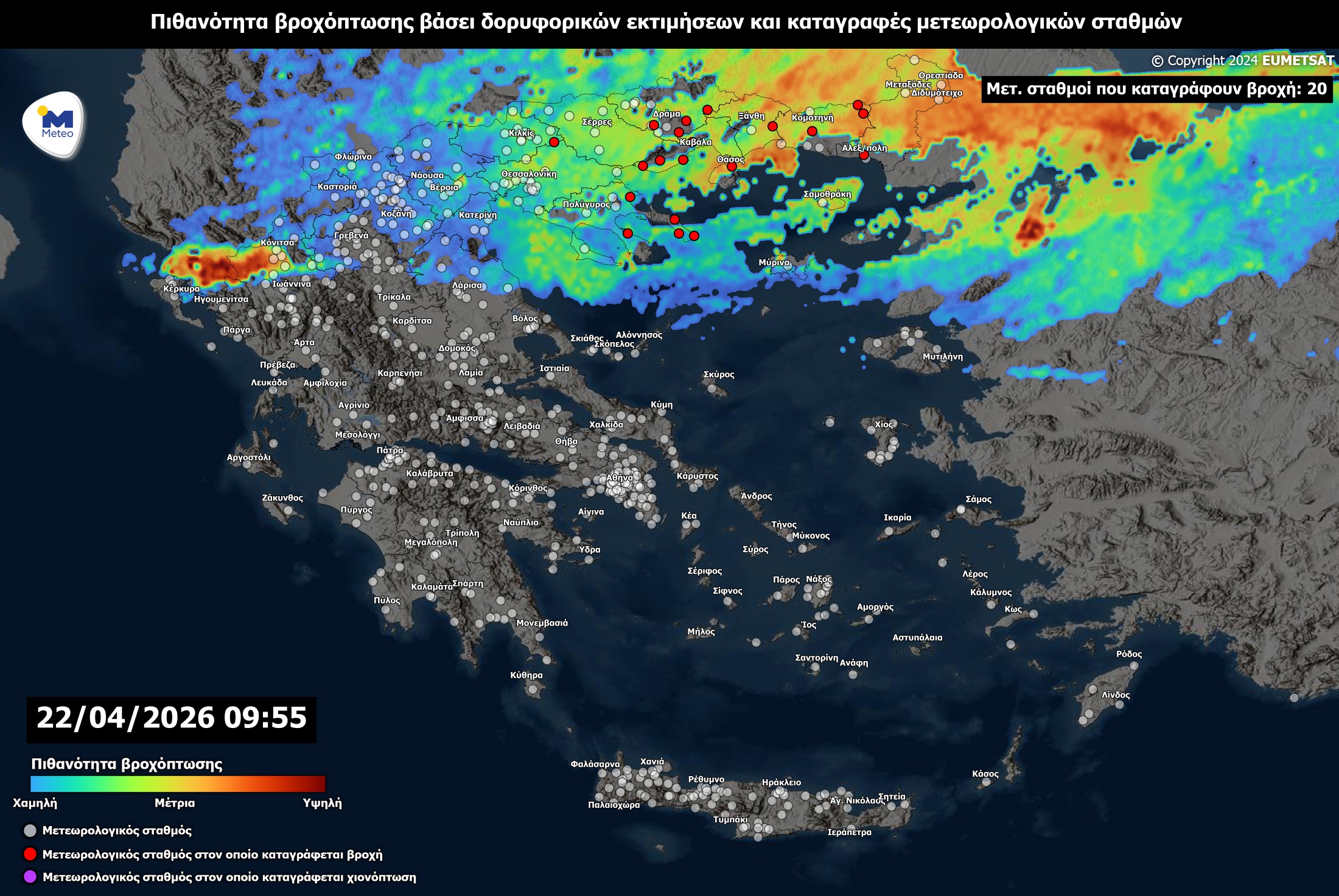 Η εικόνα προέρχεται από τον δορυφόρο Meteosat-12 του Ευρωπαϊκού οργανισμού EUMETSAT και λήφθηκε την Παρασκευή 17 Απριλίου 2026.